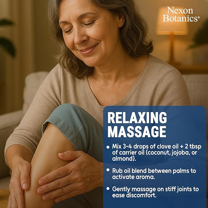 - Muscle Soothing & Relaxation: Add clove oil organic to massage blends for muscle relaxation and joint comfort.