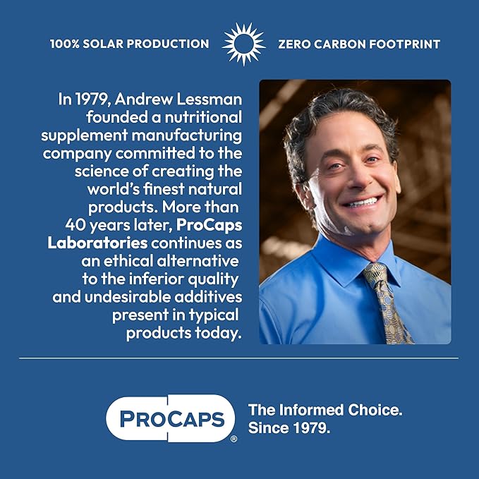 - Ethical & Eco-friendly. Zero Carbon Footprint - Uniquely committed to your health and the health of the planet, ProCaps' facilities are 100% Solar Powered with a Zero Carbon Footprint and an LEED Gold green building status. All ProCaps bottles are made from 100% recyclable post-consumer resin. Plus, Andrew Lessman and ProCaps are the largest donor of prenatal vitamins in the world (over 2 billion capsules donated to date). ProCaps, the Informed Choice for Nutritional Supplements.