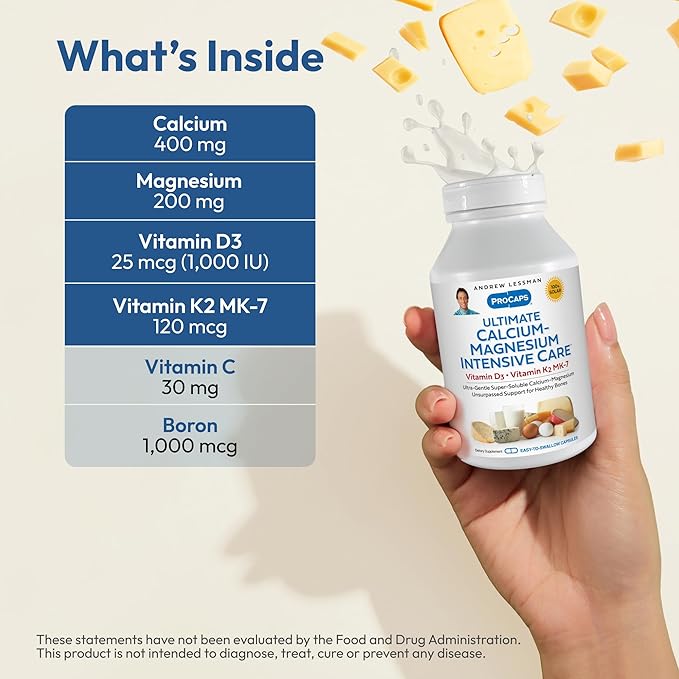 ANDREW LESSMAN Ultimate Calcium-Magnesium Intensive Care with Vitamin D3 & K2 MK7-120 mcg - 720 Capsules – Bone and Skeleton Health Essentials. Gentle, Easy to Swallow, Super Soluble. No Additives