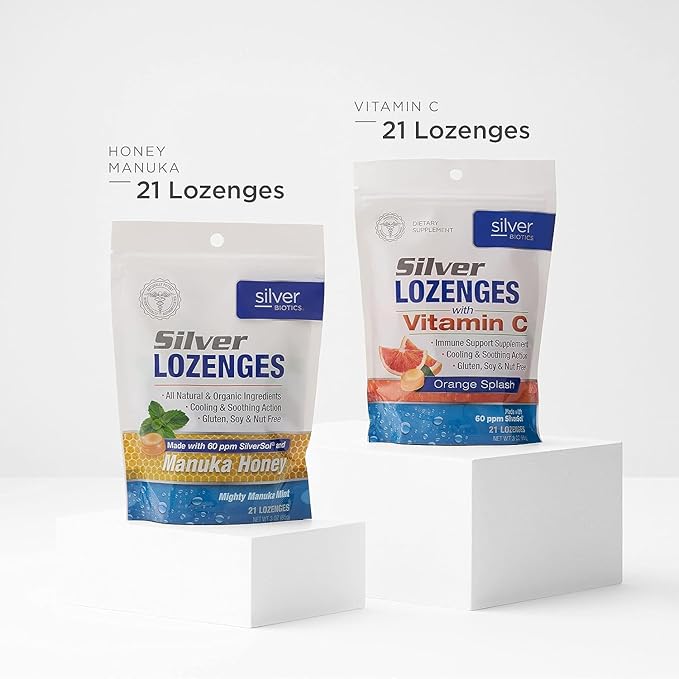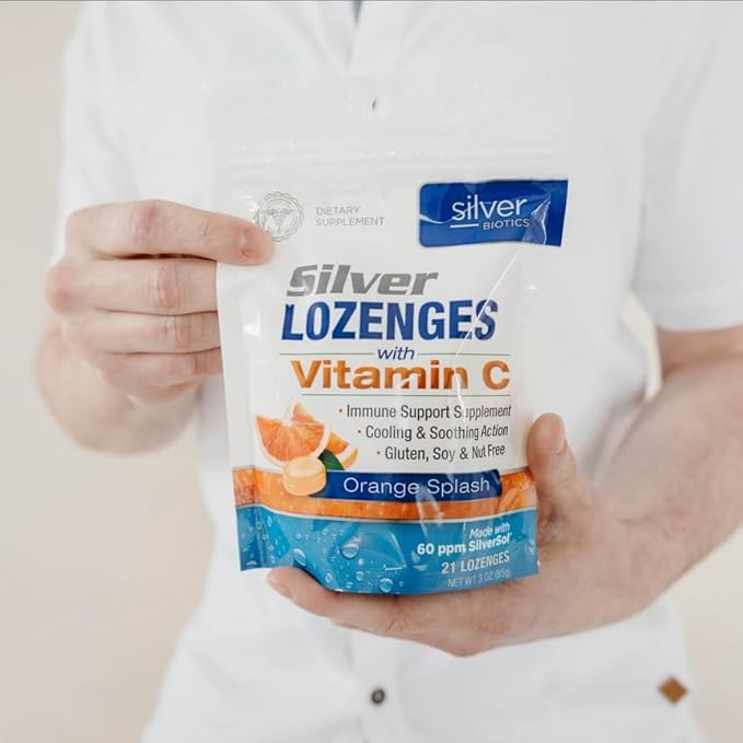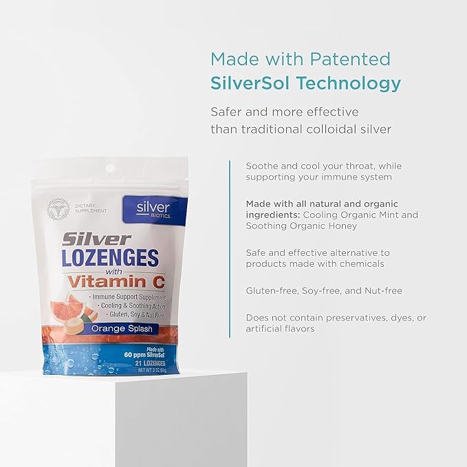 Silver Biotics Colloidal Silver Lozenges | 60 ppm SilverSol Ag₄O₄ Technology | Immune Support + Throat Soothing | Orange Vitamin C | 21 Count