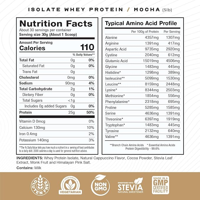 - PURE INGREDIENTS: Natural grass fed protein powder isolate is gluten-free and keto-friendly. It comes from pasture raised happy cows. Contains no fillers or artificial flavors and contains all the essential amino acids for optimal protein synthesis.