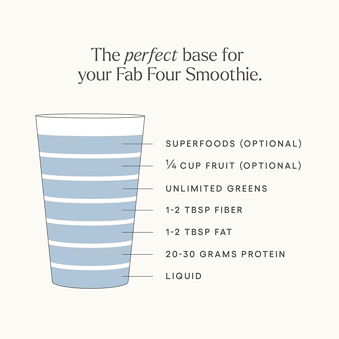- PERFECT FOR A FAB FOUR SMOOTHIE. Incorporate this Grass-Fed Beef Protein Powder into your Fab Four Smoothies. Make a satisfying smoothie and get all the protein you need with 1 scoop of powder plus fat, fiber & greens