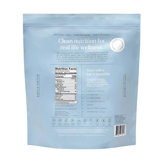 Be Well by Kelly Vanilla Grass-Fed Beef Protein Powder, 23G of Protein & Zero Carbs (3 Ingredients, 30 Servings) 9 Amino Acids + 3 BCAAs No Soy, No Dairy, Stevia-Free, No Sugar Added 1.87lb 849g