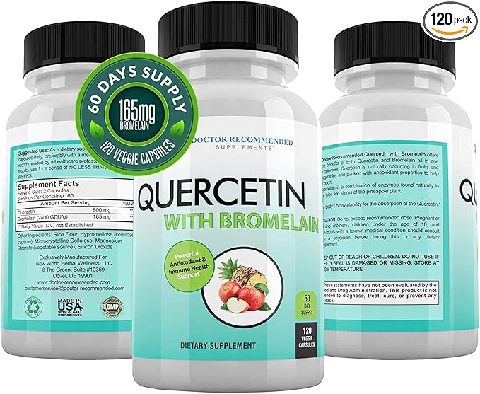 DOCTOR RECOMMENDED SUPPLEMENTS Quercetin 800mg w/Bromelain 165mg Per Serving- 120 Veggie Capsules-Full 60 Day Supply, Vitamin Supplement to Support & Bioflavonoids, Gluten Free, Non-GMO