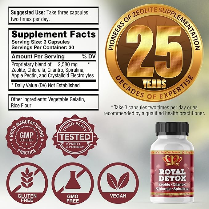 Royal Detox - All-in-One Cleanse | Zeolite, Cilantro, Chlorella, Spirulina, Apple Pectin | Full Body, Liver, Colon Detox | Supports Energy, Mood, Immunity, Gut Health, Reduced Inflammation 90 Capsules