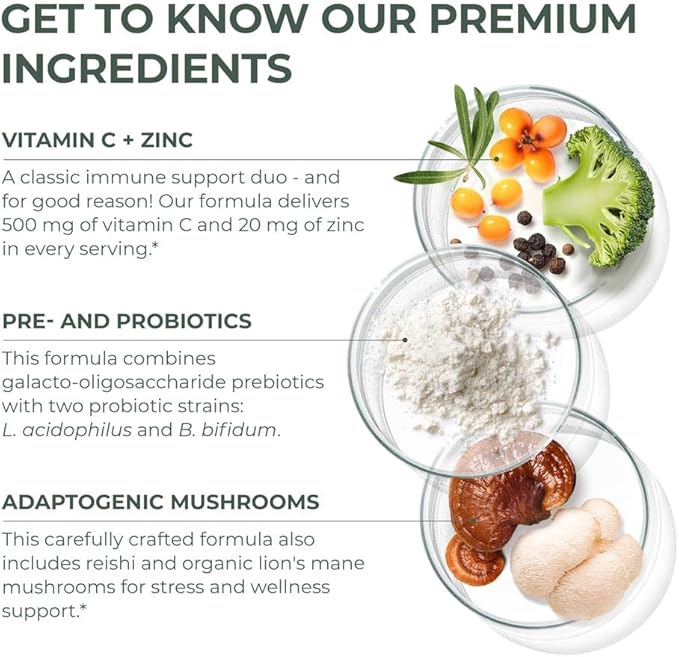 - 3-Step Comprehensive Approach: 20mg of Zinc, Probiotics and 30mg of Vitamin B6 are three ingredients often recognized for their role in supporting overall well-being, for holistic immune health support