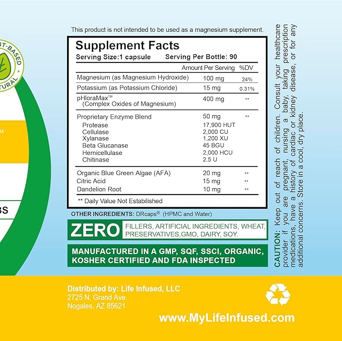 Life Infused Cleanse Infused Plus - Premium Natural Colon Cleanser with Oxygenated Magnesium, Herbs, and Enzymes, Helps Relieve Constipation Gently, Detoxifies Blood, Colon, Liver & Kidneys (90 Caps)