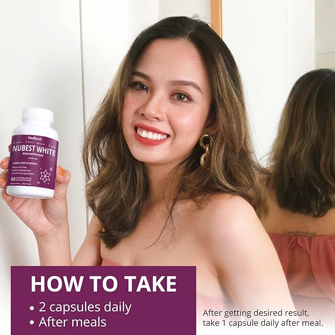- Antioxidants and Vitamins: NuBest White helps your skin stay healthy and beautiful with antioxidants and vitamins. Such healthful ingredients nourish your skin from the inside out, promoting its gorgeous bloom to give you a confidence boost.