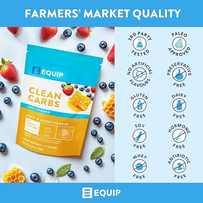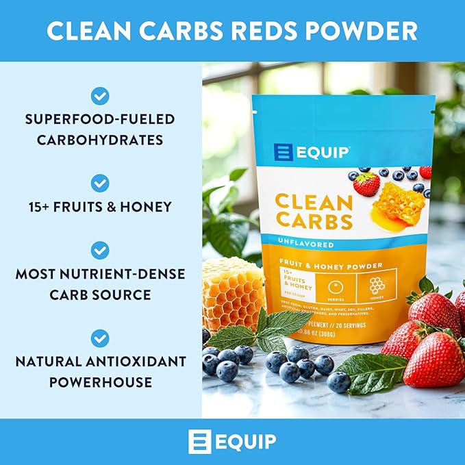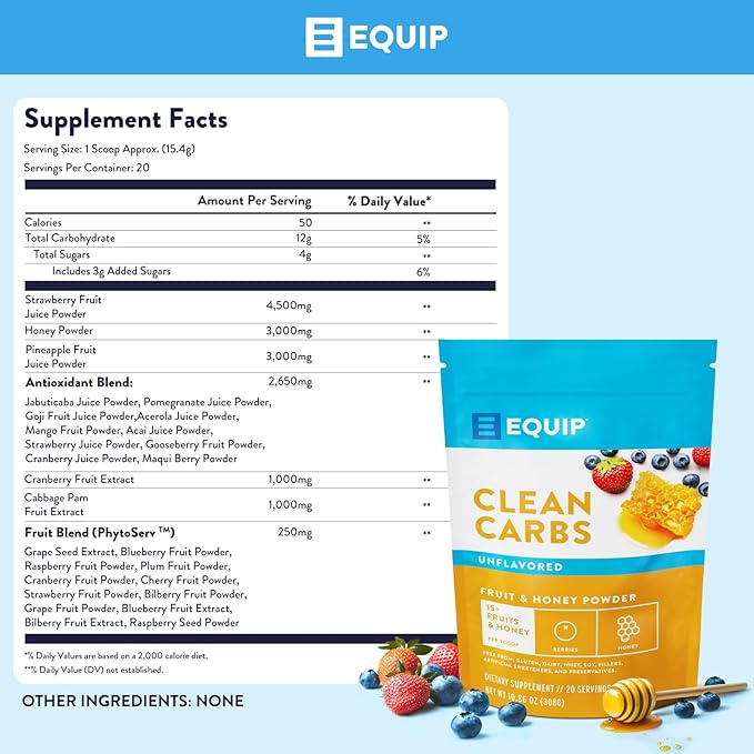 Equip Foods Clean Carbs | 15+ Fruits and Honey Superfood Powder | Post Workout Recovery Powder | Antioxidants, Carbohydrate Supplement | Immune Support Carb Cleaner | 20 Servings, Unflavored