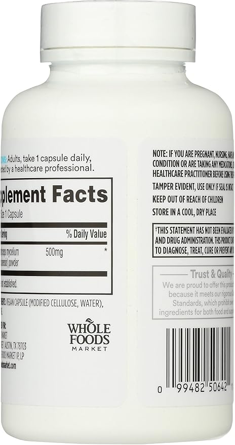 365 by Whole Foods Market, Cordyceps Mushroom Vegan Capsules, 500mg, 90 Count
