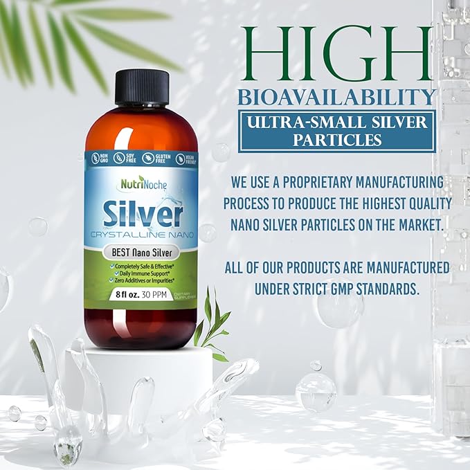 - ✅ HIGH BIOAVAILABILITY COLLOIDAL SILVER SPRAY = HIGH ABSORPTION RATE - The ultra-small silver particles contained in NutriNoche liquid silver spray solution means your body can absorb and utilize the silver at a cellular level. This means that it is fully bioavailable so your body can utilize the silver spray. It is also easily excreted due to it’s tiny particle size so it is completely safe to consume.
