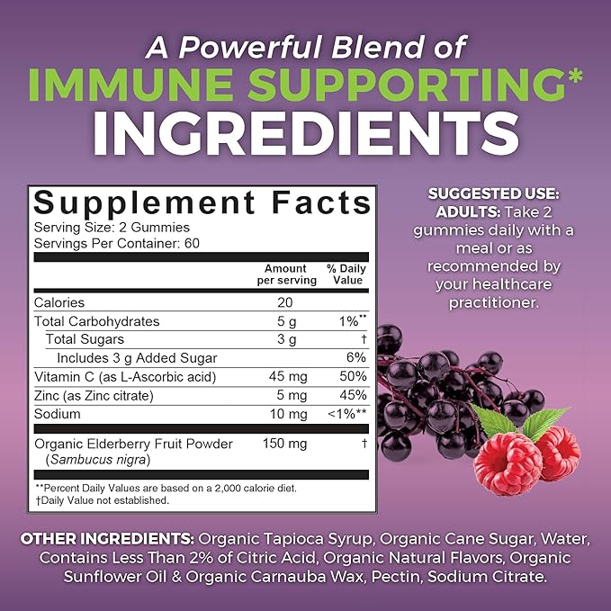 - Elderberry & Zinc Gummies for Adults - Support your immune system with an immune supporting trifecta.* The elderberry gummy for adults also includes vitamin C and zinc, giving you triple the action for immune support.*