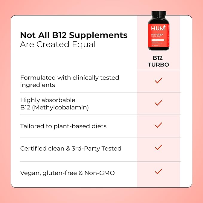 HUM B12 Turbo - Daily Energy & Calcium Support & Mood Support + Hormone Balance - Non-GMO, Gluten-Free, Vegan (30-Count)