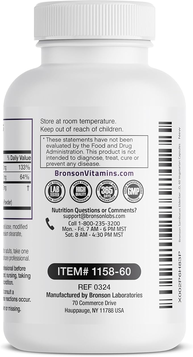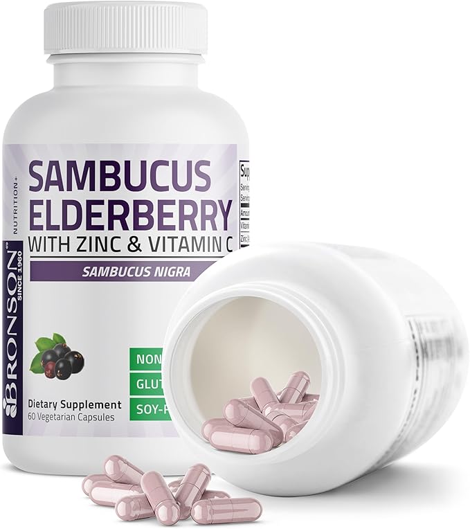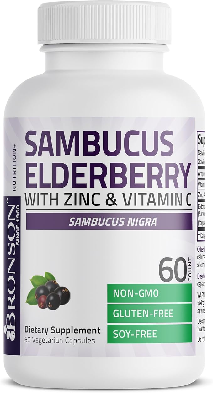 Bronson Sambucus Elderberry with Zinc & Vitamin C Triple Immune Support Complex Immune & Antioxidant Protection, Non-GMO, 60 Vegetarian Capsules