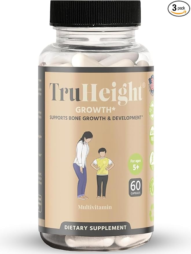 - TRUHEIGHT GROWTH CAPSULES FOR KIDS & TEENS: TruHeight's growth capsules contain a responsibly sourced collection of vitamins and minerals, including Ashwagandha, Calcium, Vitamin D, and Vitamin K, culminating in natural growth and development.* TruHeight is the #1 Pediatrician Recommended Brand for Growth & Development. *IQVIA ProVoice Survey, March 2025. *