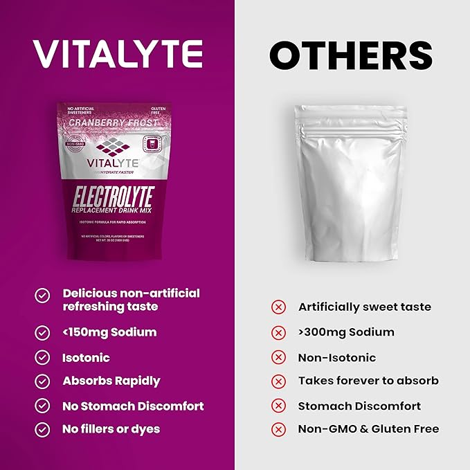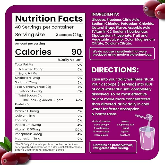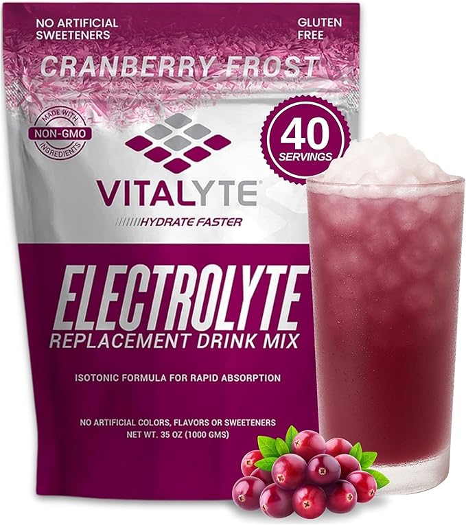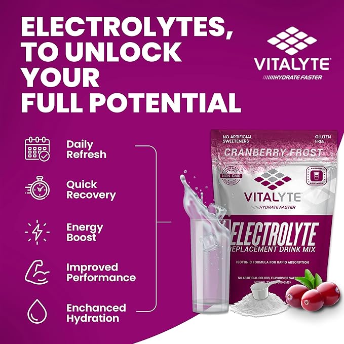 Vitalyte Electrolyte Powder Drink Mix, Isotonic Electrolyte Hydration Mix, Gluten Free Post Workout Powder Mix, Pack of 1, 35 oz., Cranberry Frost Flavor