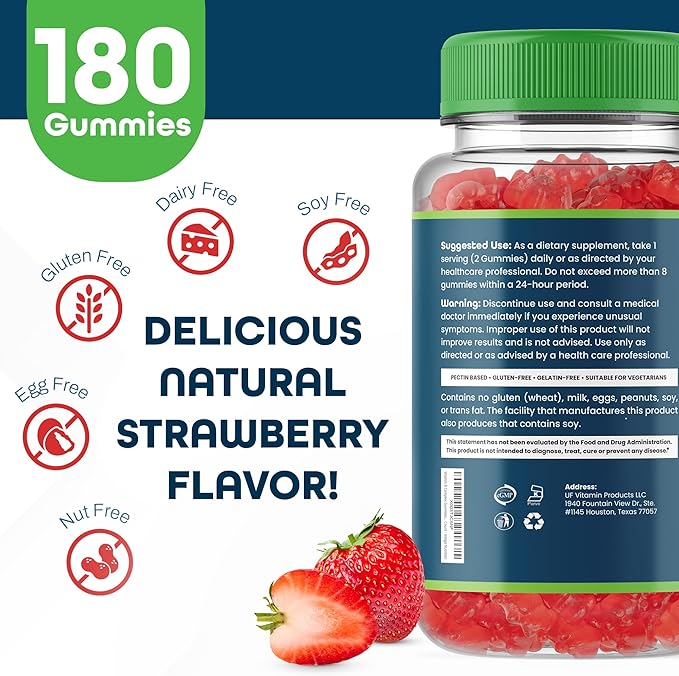Vitamin B Complex Gummies for Adults, B Complex Vitamin Supplement for Women and Men, B Vitamins Complex Gummies for Energy and Brain Health, Natural Strawberry Flavor, 180 Count