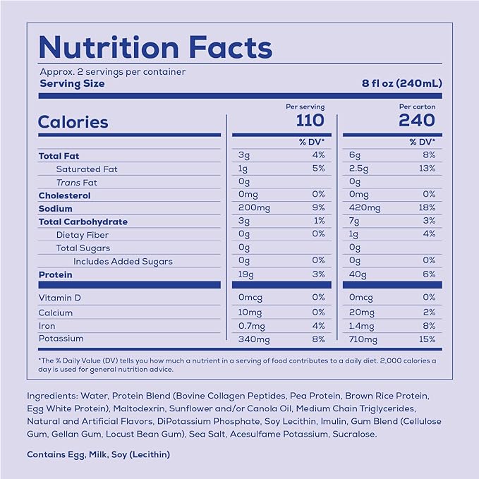 - Ingredients With Scientific Support - These RTD protein drinks contain a whole food protein blend protein and medium chain triglycerides. This keto meal replacement shake features an ingredient profile consistent with the MRE line – keto friendly, plus whey and lactose free.