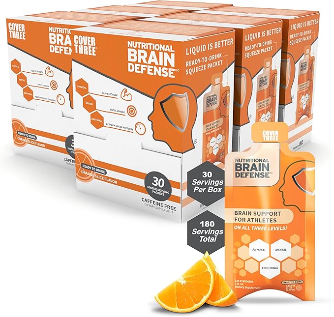 Cover Three Nootropic Brain Supplement for Athletes & Active Adults - Assist Focus, Memory, Clarity, Recovery - Trans Resveratrol, Omega 3 DHA EPA, Uridine, Alpha GPC - Orange Flavor 30 Count (6)