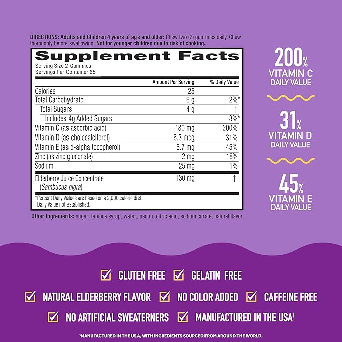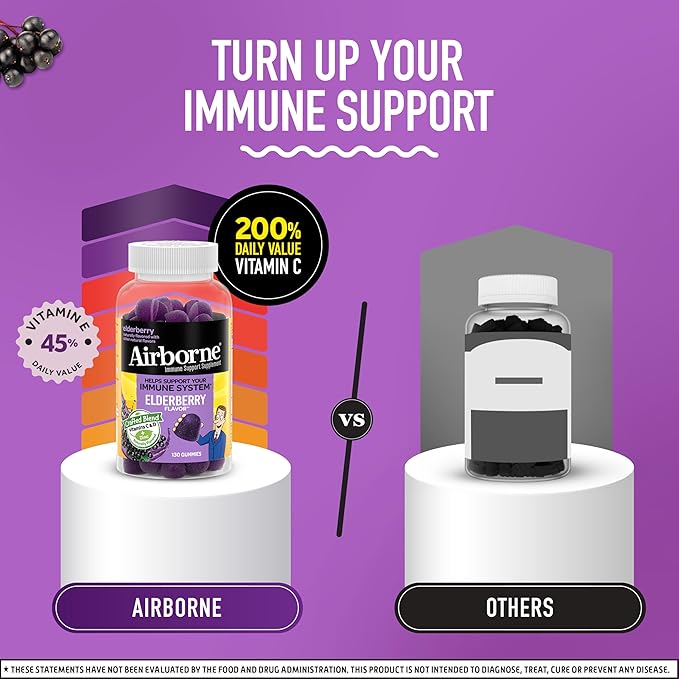- AIRBORNE ELDERBERRY + ZINC & VITAMIN C GUMMIES: This is a great tasting, Elderberry flavored, Vitamin C, D and Zinc immune support gummy;*