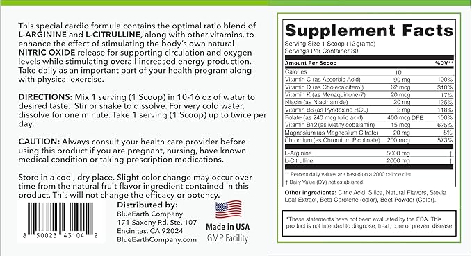 - L-Arginine 5000mg with L-Citrulline 2000mg.
