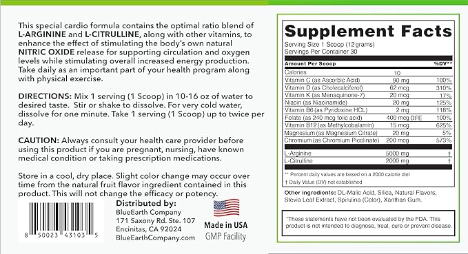 - L-Arginine 5000mg with L-Citrulline 2000mg.