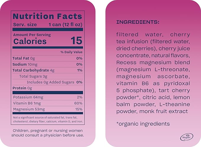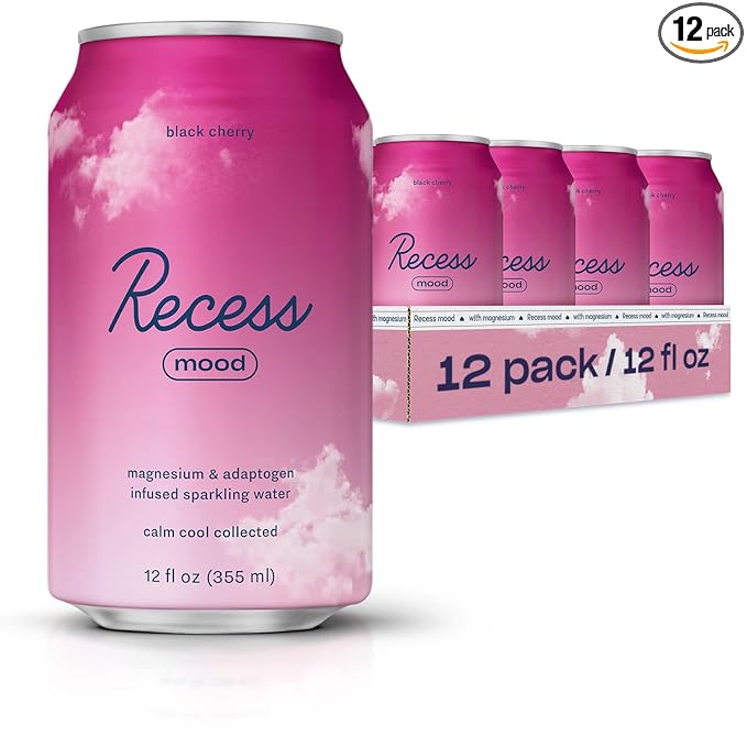 Recess Mood Magnesium & Adaptogen Drink, Relaxation Beverage, 12 ounce (Black Cherry, 12 pack)
