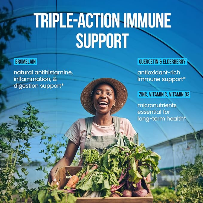 - More effective immune support: Our quercetin-bromelain supplement contains 500mg natural quercetin, providing 2x more powerful immune support than other supplements’ 250mg of synthetic quercetin. Plus, we blend in 5 added ingredients for broad-spectrum support.