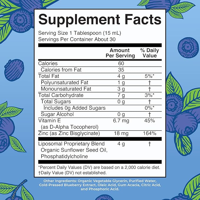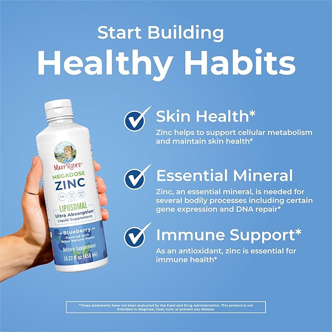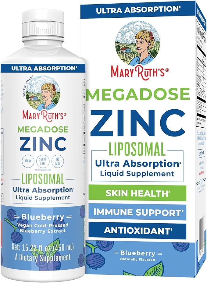 MaryRuth Organics Nutritional Supplement | Liposomal Liquid Zinc Supplement with Vitamin E | Overall Health and Skin Care | Blueberry | Vegan, Non-GMO, Gluten Free, No Sugar Added | 15.22 Fl Oz