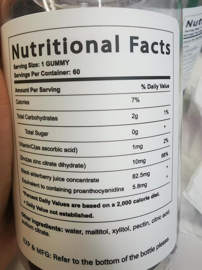 - chewable black elderberry gummies 120 counts, 2 month supply.