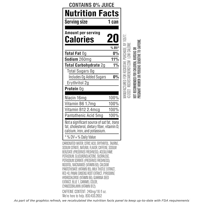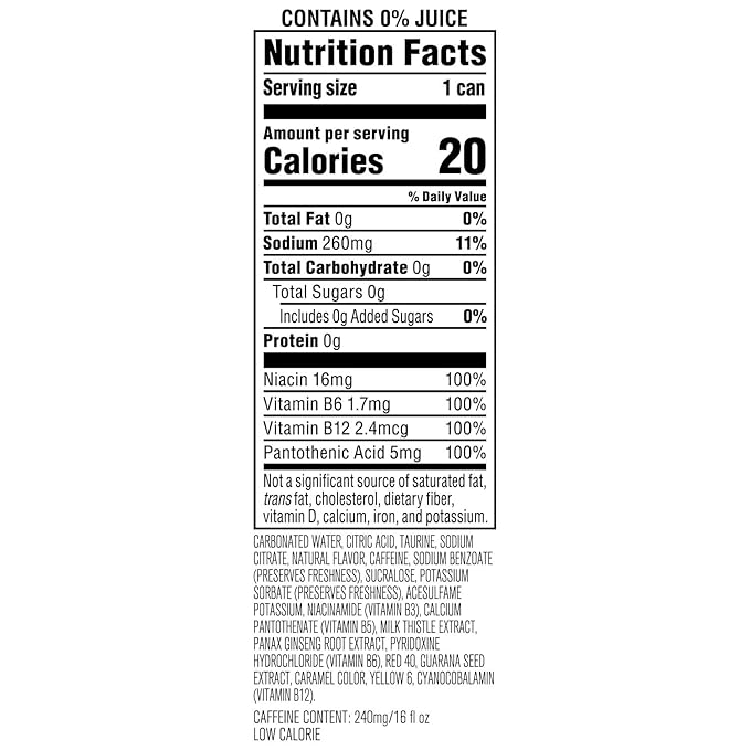 - Power your hustle with our zero-sugar energy drink, fully-charged with B-vitamins and formulated with guarana, taurine, and caffeine to help keep you going and stay focused with bold, distinct flavors. >75mg caffeine has been shown to help improve attention.