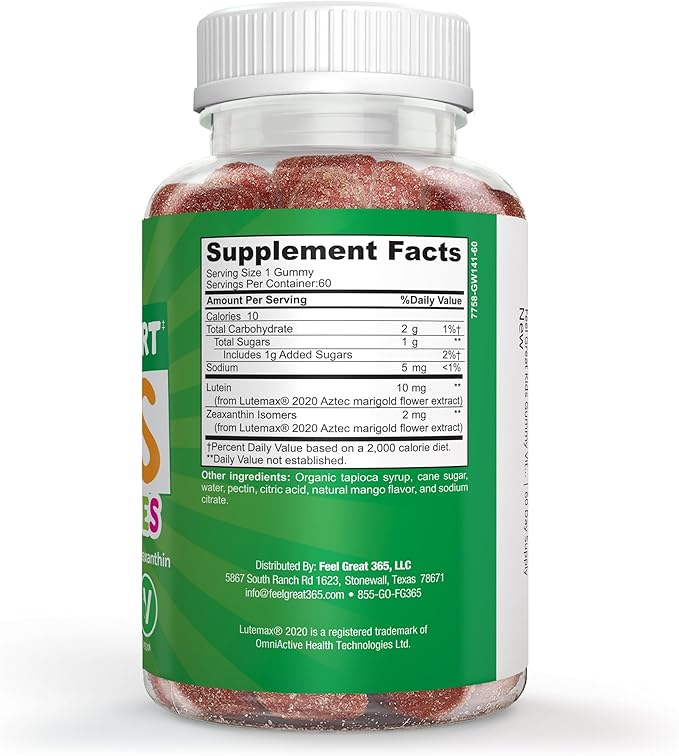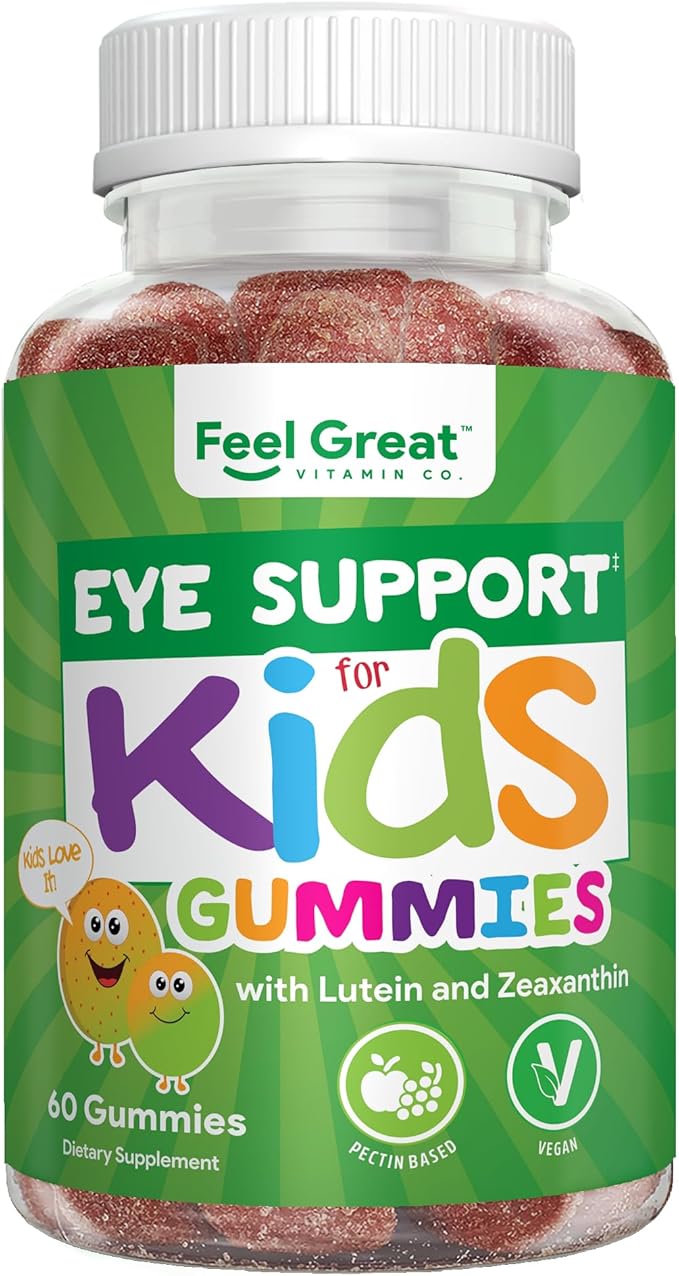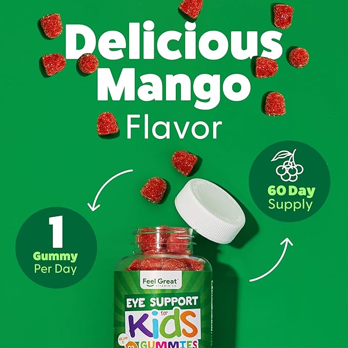 Feel Great Kids Gummy Vitamins for Eyes | Essential Eye Vitamins Lutein and Zeaxanthin | Mango Flavored Vegan Eye Vitamins for Kids | Gluten Free | 60 Day Supply