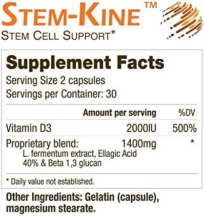 - AGING SUPPORT PACKAGE Includes (1) Stem-Kine, (1) Infla-Kine, and (1) Vein Caps, with 60 Capsules each. Recommended 20-30 day supply, depending on dosage.