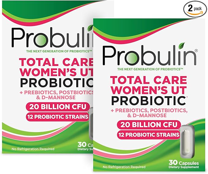 Probulin Total Care Women's Urinary Tract = Prebiotics + Probiotics + Postbiotics to Support Healthy Vaginal Microbiome - 20 Bill CFU - 12 Strains - 30 Vegan Caps (Twin Pack)