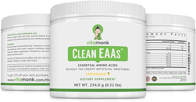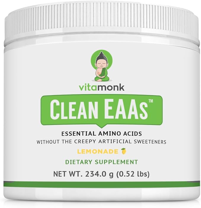 VitaMonk Clean EAA - EAAs with No Artificial Sweeteners for Pre-Workout, Energy and Recovery - Max Bioavailable EAA Powder with 9 Essential Amino Acids - Natural Lemonade Flavor