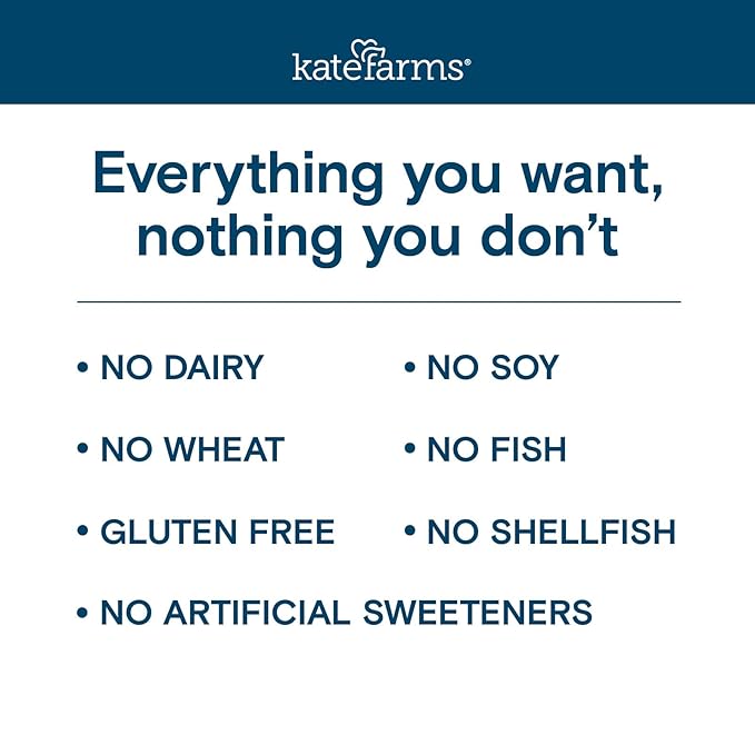 - INGREDIENTS: Kate Farms organic, plant-based formulas are made without artificial sweeteners or common allergens.