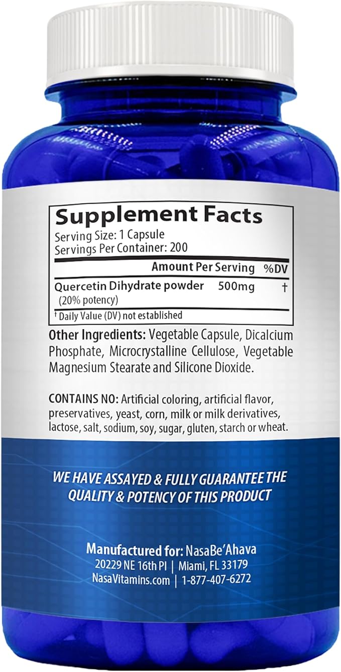 Quercetin 500mg Capsules | Vegan Friendly Quercetin Dihydrate High Potency Antioxidant Supplement for Skin Heart and Immune Support | Gluten-Free | Made in the USA in GMP Facilities (200 Servings)