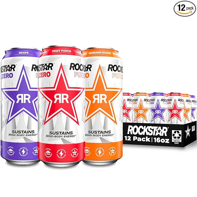 - Includes 12 (16oz) cans of Rockstar Energy Drink: 4 cans each of Pure Zero Orange, Pure Zero Grape, and Pure Zero Punched flavors