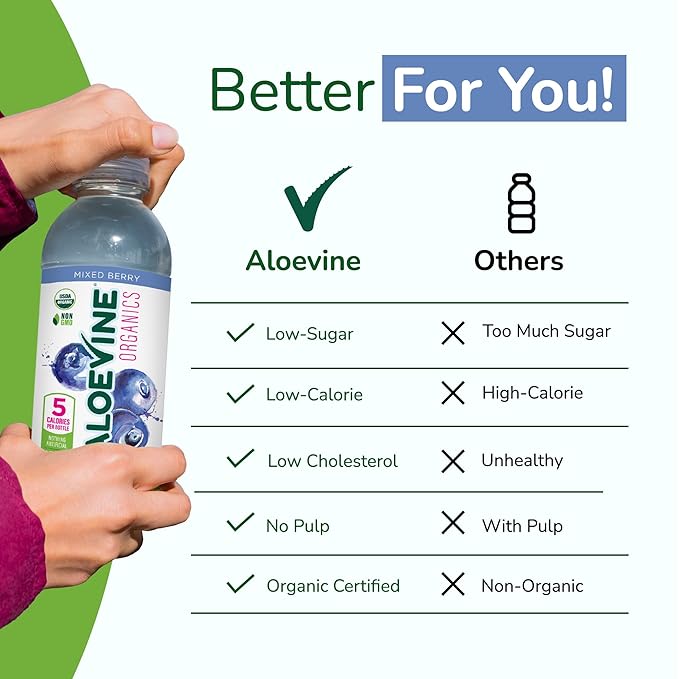 - Add Flavor To Your Hydration - Experience the perfect balance of taste and health with Aloevine’s Organic Aloe Vera Drink. This refreshing aloe vera juice drink not only satisfies your taste buds but also gives your body the essential guilt-free hydration it needs.