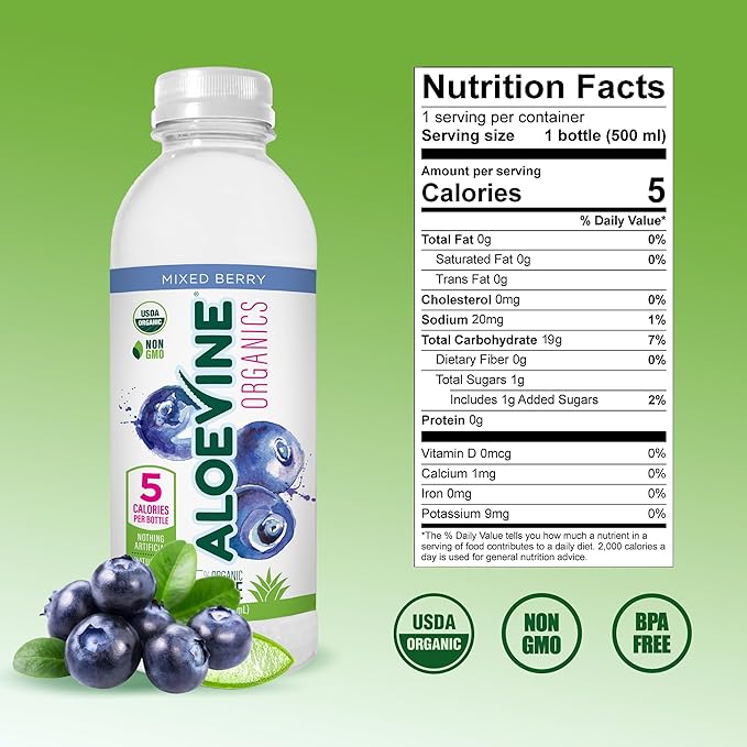 - 5 Calories, 0 Guilt - These health drinks are the only organic-certified, pulp-free aloe drinks on the market. With just 5 calories and less than 1g of sugar per bottle, it’s the ideal choice for health-conscious individuals who crave delicious flavor without added sugars or artificial ingredients.