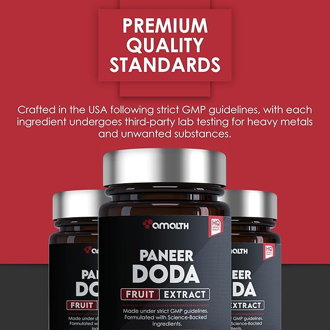 - Pure Paneer Doda Fruit Extract: Amalth Paneer Doda capsules contain high-quality fruit extract from authentic Paneer Doda fruit, processed without harmful chemicals and preservatives.