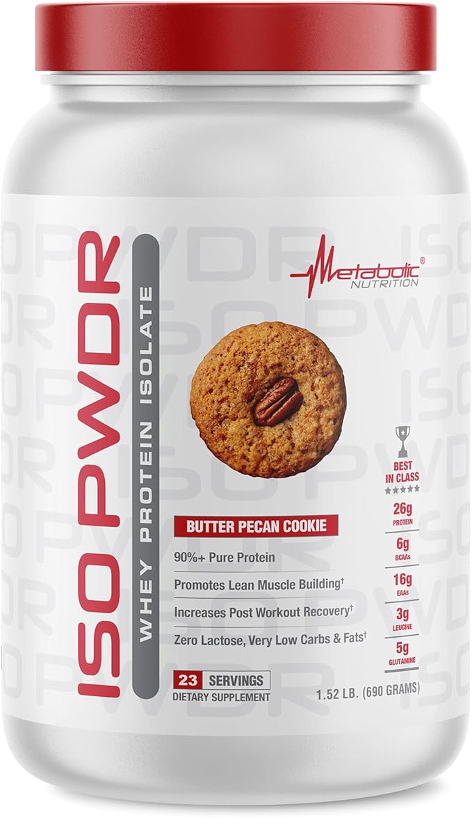 Metabolic Nutrition Whey Protein Isolate ISO PWDR Butter Pecan Cookie, 1.54lb, 23 Servings, 26g Protein, Fast Digesting, Zero Carbs, Delicious Flavor, Very Low Carbs & Fat, Zero Lactose