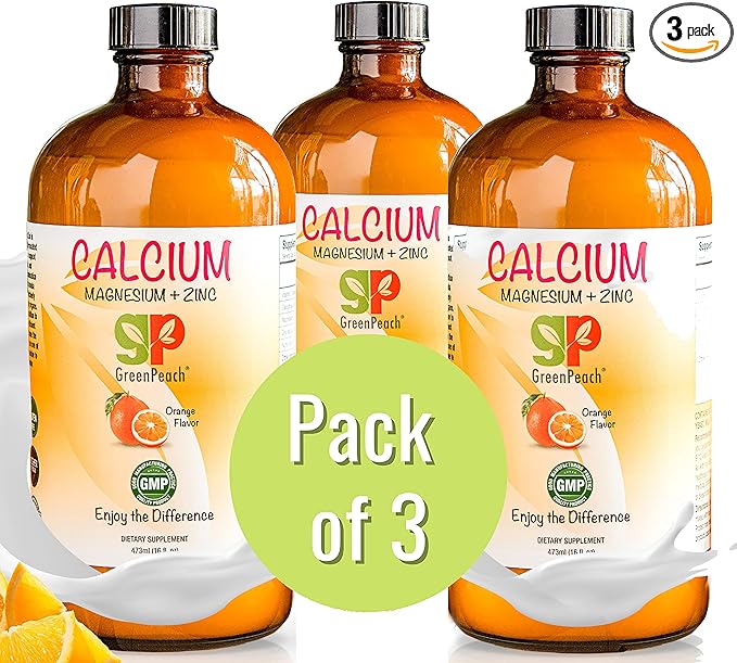 GreenPeach Liquid Calcium for Kids - Magnesium, D3 & Zinc Supplement - Calcium Citrate & Vitamin D3 Kids Calming Syrup - No Sugar No Artificial Flavors - Vegetarian Kosher (3-Pack)