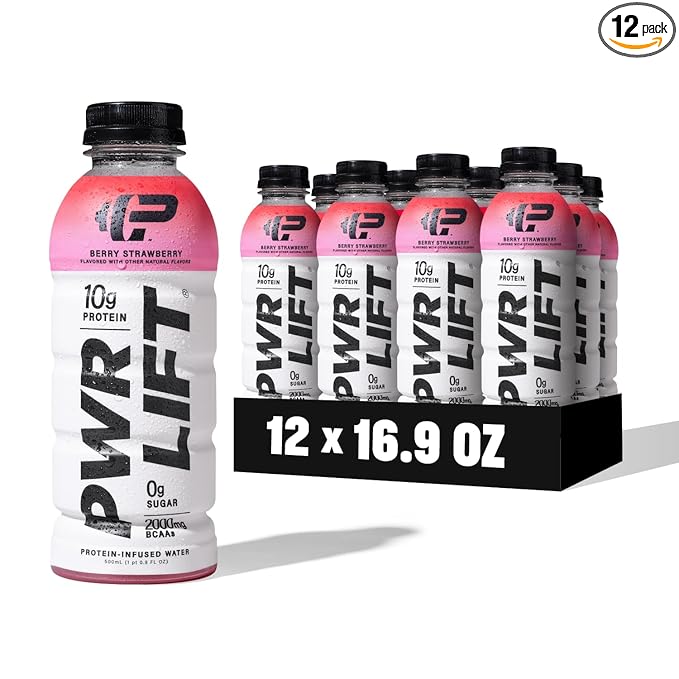 Whey Protein Water Sports Drink by PWR LIFT | Berry Strawberry | Keto, Vitamin B, Electrolytes, Zero Sugar, 10g of Protein | Post-Workout Energy Beverage | 16.9 Fl Oz (Pack of 12)