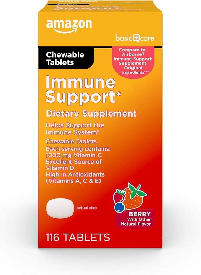 - VITAMIN D: Amazon Basic Care Chewable Immune Support Tablets are an excellent source of the body-essential sunshine vitamin, Vitamin D
