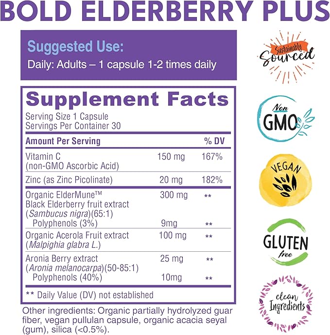 - Innovative Science: Bold Botanica’s Elderberry Plus features a super concentrated extract, made from Haschberg elderberries, produced using a patented low heat drying process. This innovative process preserves the elderberries’ beneficial nutrients and bio-actives.