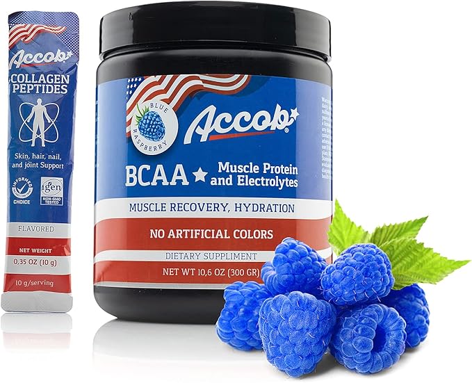 - ACCOB BCAA POWDER contains 7,2g of BCAAs per serving in the preferred 2 : 1 : 1 Ratio to support muscle recovery, repair, and growth plus 10 g of Collagen Peptide Powder Bonus