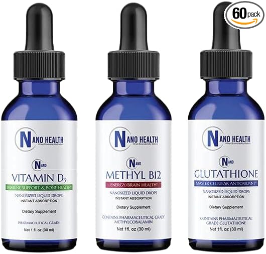 Nano Essential Wellness Bundle Combines 3 mavellous Health Promoting Products: Nano Glutathione, Nano Methyl B-12 & Nano Vitamin D3