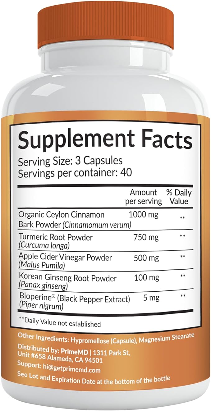 - What are the ingredients - Our vegan cinnamon capsules include apple cider vinegar, turmeric, Panax ginseng, ceylon cinnamon & BioPerine for more absorption. They're gluten free, GMO-free & 3rd party tested.