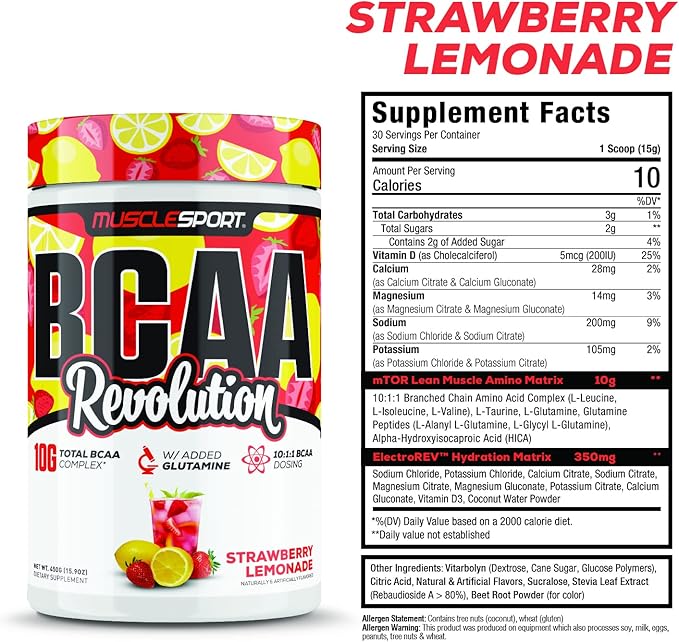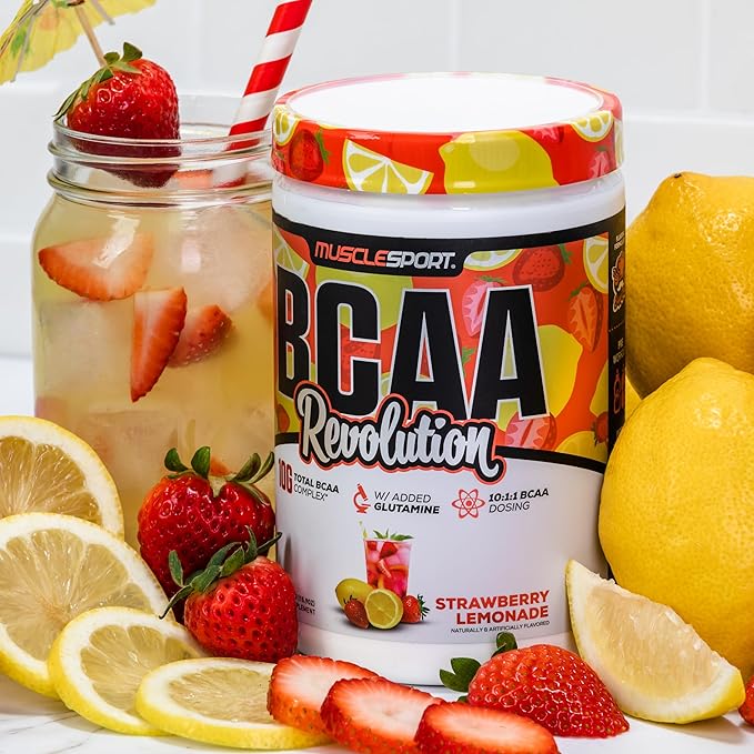 Musclesport BCAA Revolution Amino Acid Powder Supplement for Men & Women - Intra Workout Training Complex - Recovery Supplemen (Strawberry Lemonade, 30 Servings)